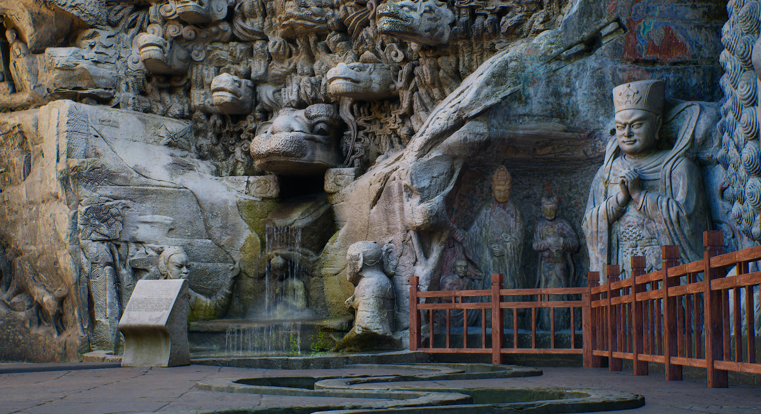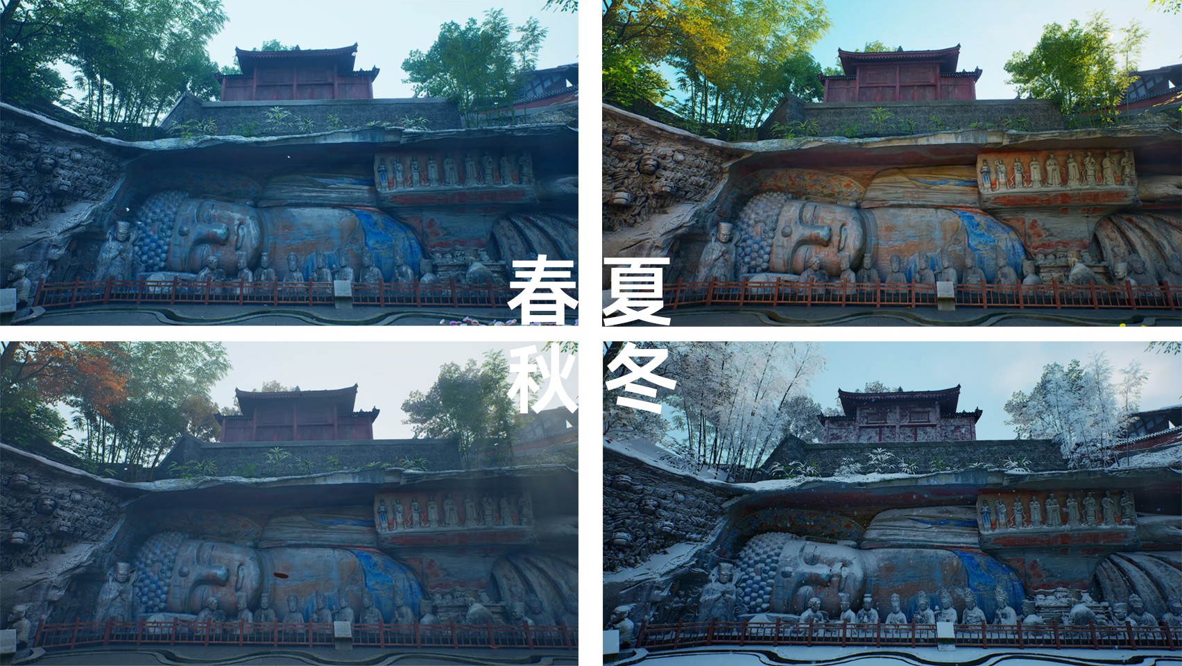 《云游·大足石刻》元宇宙数字文旅项目于2024年5月上线。该项目依托大足石刻,融合大规模数字采集、实景建模、云计算、UE5引擎实时渲染及数字虚拟人等前沿科技,并结合全场景视觉与实时光线追踪技术,在8K超高清画质下呈现大足石刻毫米级高保真细节、自然光影变化及逼真材质效果。