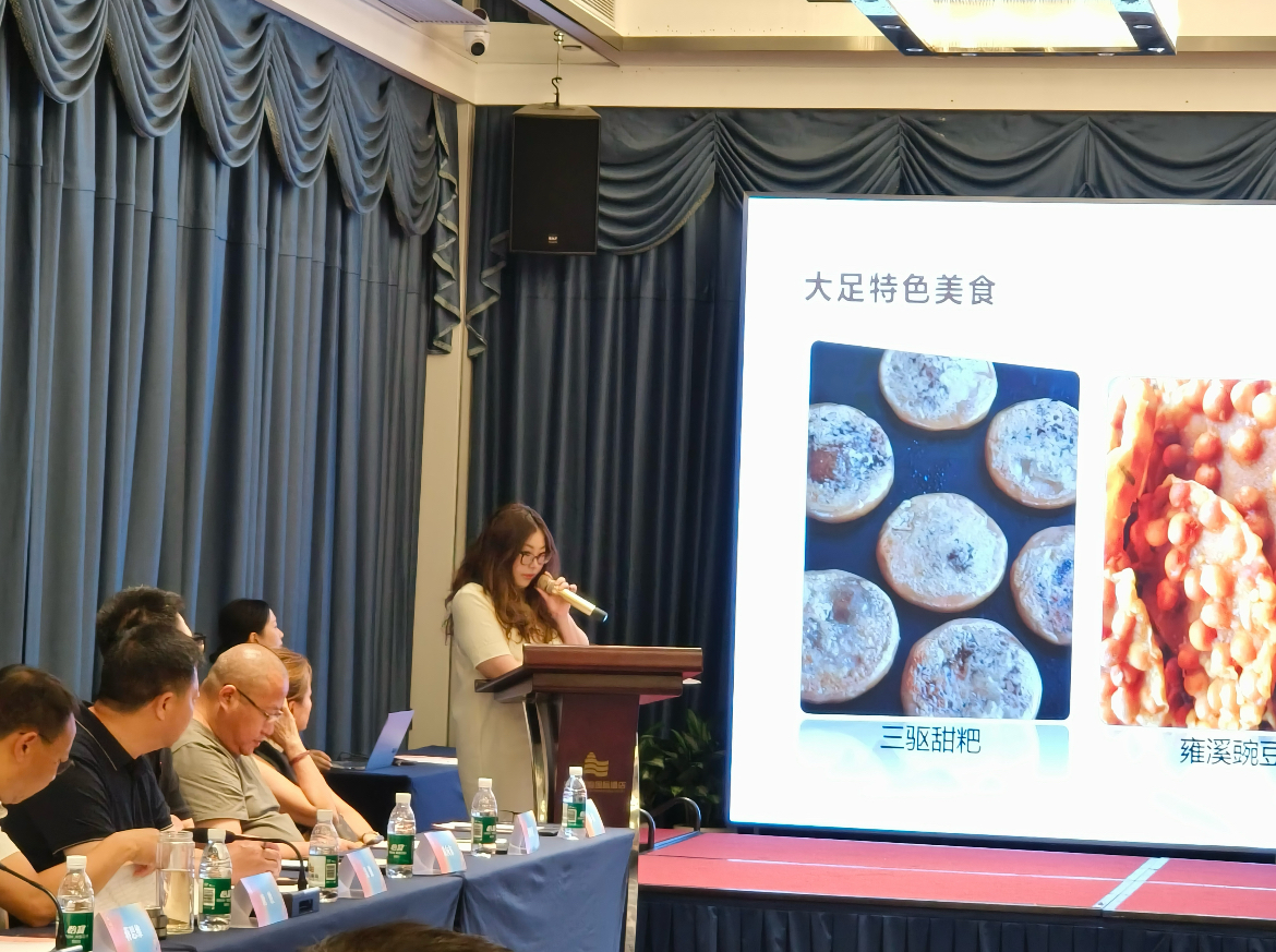 大足石刻研究院、文旅集团、合作旅行社等对大足石刻、大足文旅资源、大足旅游线路产品及营销政策等作了详细推荐,并与海南方面参会人员就大足石刻影响力、线路产品吸引力、以及推动客源互送等开展了深度交流。