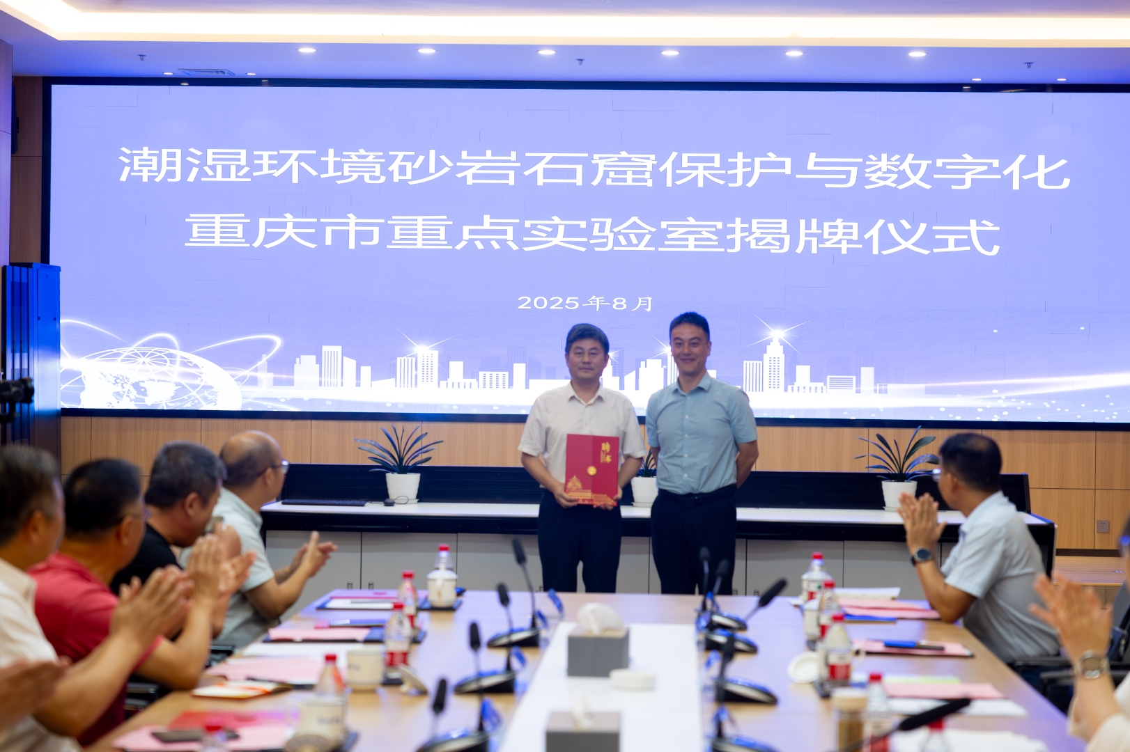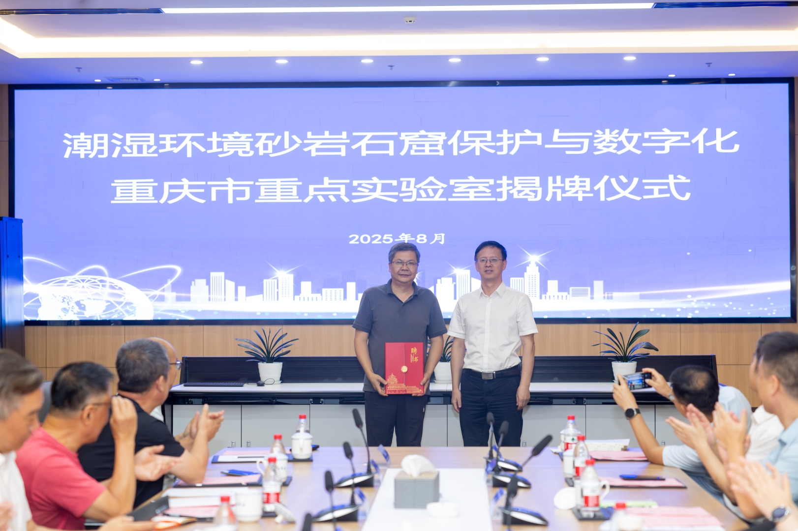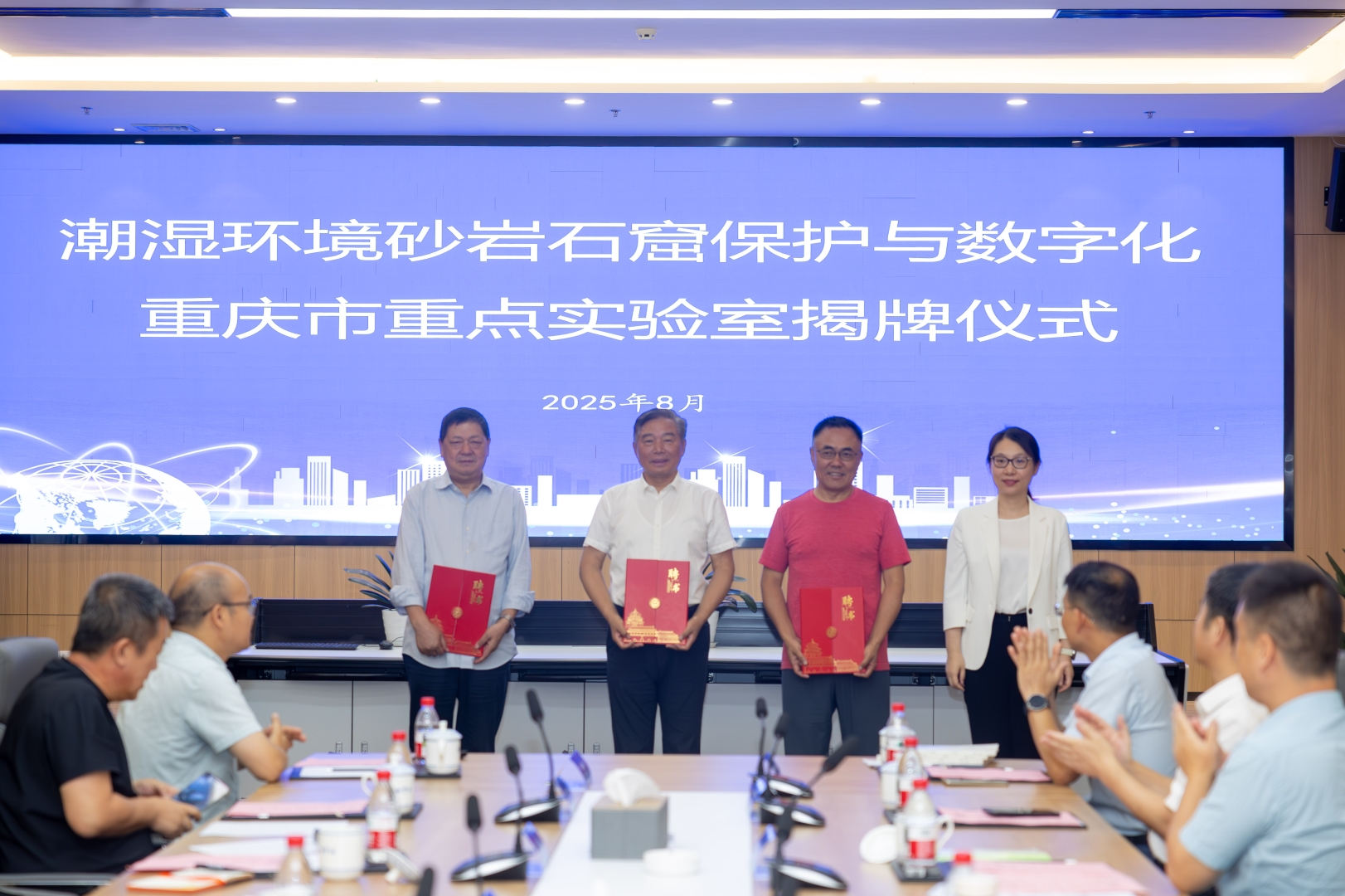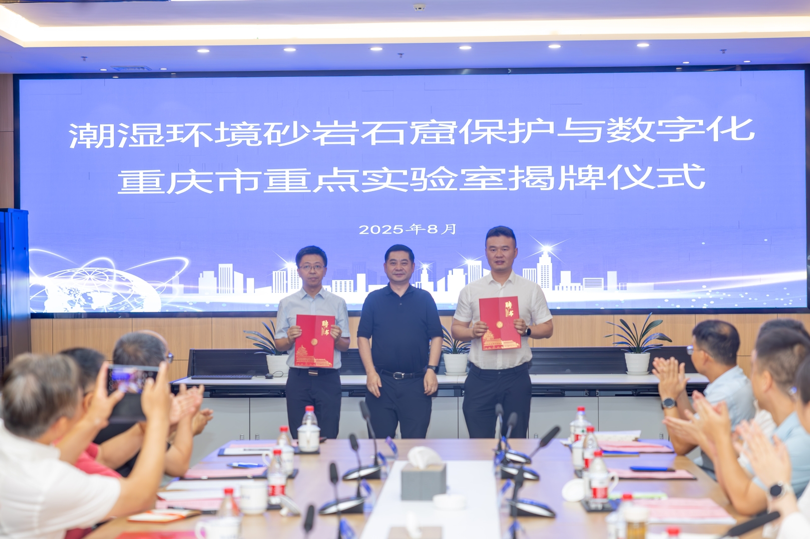 实验室揭牌,标志着由大足石刻研究院、重庆大学、重庆邮电大学共同申报创建的潮湿环境砂岩石窟保护与数字化重点实验室正式成立,成为重庆市乃至西南地区文化遗产保护领域的一个重要科研平台。